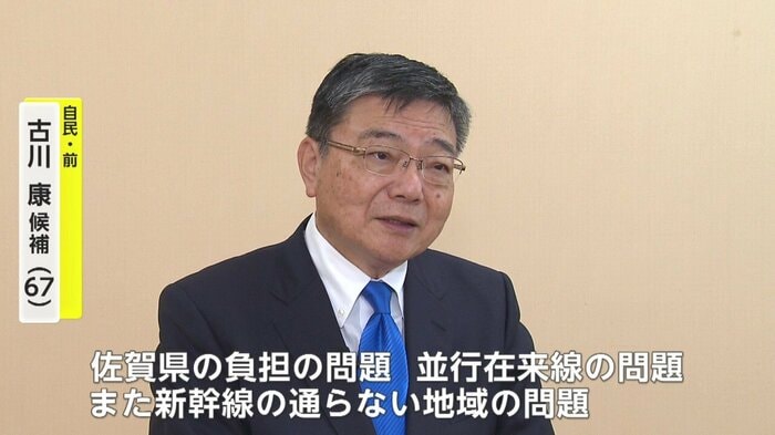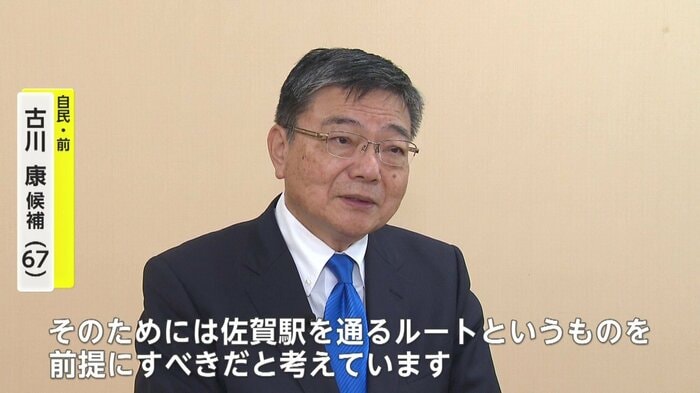 自民党の古川康さんは「佐賀駅を通るルートを前提にすべき」と主張。「佐賀県の負担の問題などに解決策を提示する必要がある」と訴える。