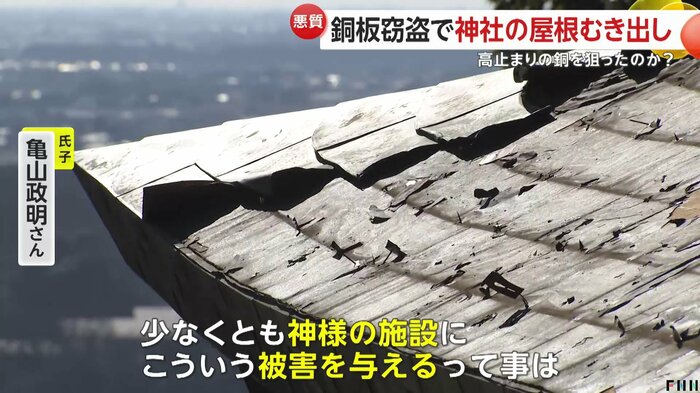 怒り心頭っていうのが本音ですけど、言いようがないですね。少なくとも神様の施設にこういう被害を与えるってことはどういう人なのか、もっと考えてほしい。