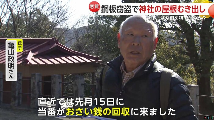 直近では1月15日に当番がお賽銭の回収に来た。その時に気がつかなかったようなんです。気がついたのが2月2日の朝。本当に典型的な泥棒の仕業ですね。