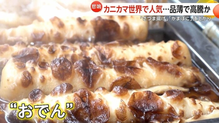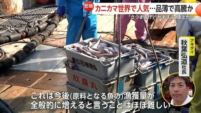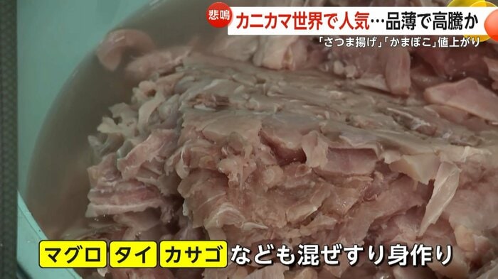 魚のすり身は、ほとんどの商品に使われるという。なかでも、練り物にすると旨みが引き立つある魚が高騰し、手に入りづらい状況だ。