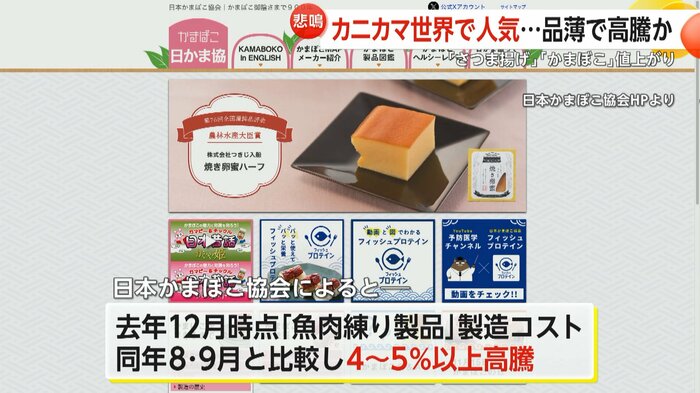 日本かまぼこ協会によると、2025年12月時点の「魚肉練り製品」の製造コストは同年の8月・9月と比較して4〜5%以上も高騰した。