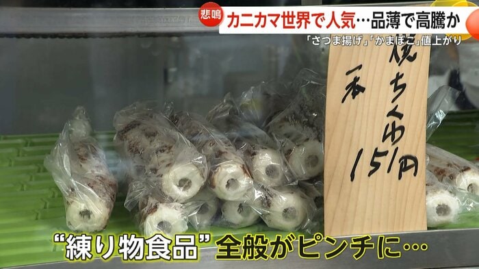 物価高の影響で、ちくわやかまぼこなどの練り物製品に値上げの動きが広がっている。主な原因は原料となるアメリカ産スケトウダラの品薄と高騰だ。