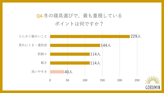 Q4:冬の寝具選びで、最も重視しているポイントは何ですか?(複数回答)