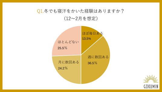 株式会社KURUKURU(本社:東京都中央区銀座、代表取締役:関沢 康寛)が展開する総合寝具ブランド「GOKUMIN」は、「冬場の寝汗」に関する実態調査を実施しました。本調査では、冬場でも多くの人が寝汗を経験している実態に加え、その寝汗が冷えや中途覚醒、睡眠の質低下につながっていることが明らかになりました。また、寝具選びにおいては「暖かさ」を重視する一方で、「蒸れにくさ」や「快適性」も求められており、実際の睡眠中の体感との間にギャップが生じている様子がうかがえます。本調査の結果から、冬の快眠には単なる防寒対策だけでなく、寝床内の温度・湿度バランスまで考慮した睡眠環境づくりが重要であることが浮き彫りとなりました。本リリースではさらに、このような冬場でも感じる寝汗の実態とともに、GOKUMINによる冬でも快適に過ごすための新快眠習慣をご紹介します。