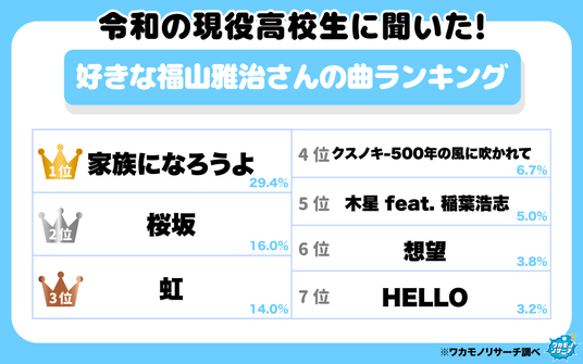 【令和の現役高校生 福山雅治さんの曲で最も聞くのは「家族になろうよ」】