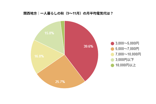 - 関西地方|一人暮らしの秋(9~11月)の平均電気代は?