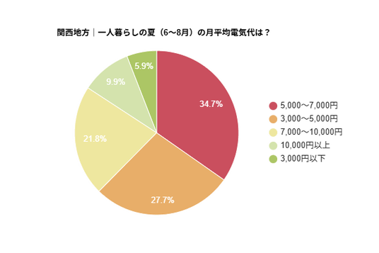 - 関西地方|一人暮らしの夏(6~8月)の平均電気代は?