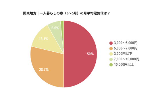 【関東の一人暮らし】春の平均電気代は半数が「3,000~5,000円」と回答