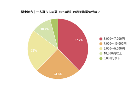 【関東の一人暮らし】夏の平均電気代は「5,000~7,000円」が約4割で最多