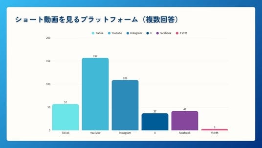 視聴プラットフォームは「YouTubeショート/157名」が最多で、「Instagramリール/109名」「TikTok/57名」が続きました。日常的に利用しているSNS内でショート動画を視聴する傾向が強く、BtoBマーケティングにおいてもショート動画活用が有効であることが示唆されます。(有効回答者数266名)
