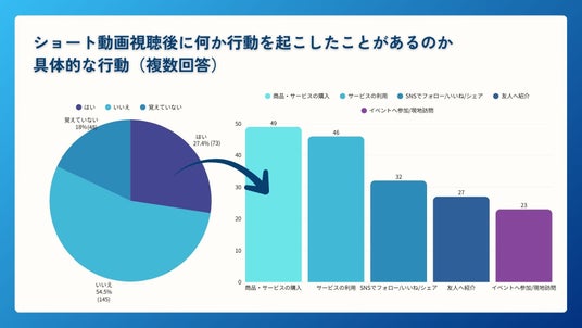 ・約3人に1人(27.4%)がショート動画の視聴後に「商品・サービスの購入」「サービスの利用」など、具体的な行動を起こした経験がある
