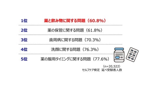 「薬に関する知識」や「歯周病」などに関する問題で、正答率が60~70%台にとどまる結果。