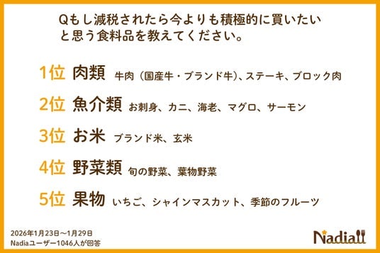 (※1)<アンケート調査概要>調査期間および回答者数:2026年1月23日~1月29日 Nadiaユーザー1046人が回答/調査機関:自社調査/調査対象: Nadiaに登録しているユーザー/調査方法:メールマガジンにてアンケート回答を募集