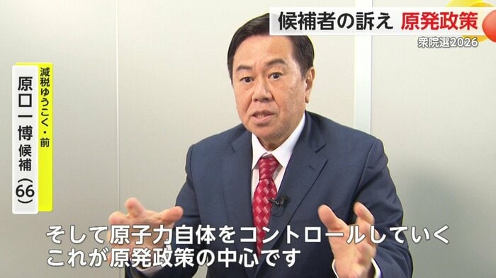 新党「減税日本・ゆうこく連合」を立ち上げた原口一博さんは「原発を国が買い上げ、原子力自体をコントロールしていく。これが原発政策の中心」と訴える。