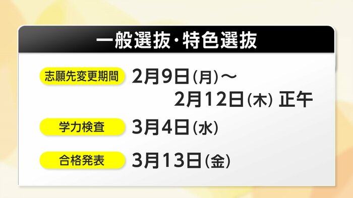 学力検査は一般・特色ともに3月4日(水)に実施され、合格者は3月13日(金)に専用のホームページで発表される予定。