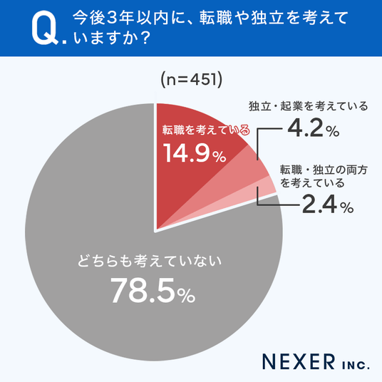■21.5%が「今後3年以内に転職や独立を考えている」と回答
