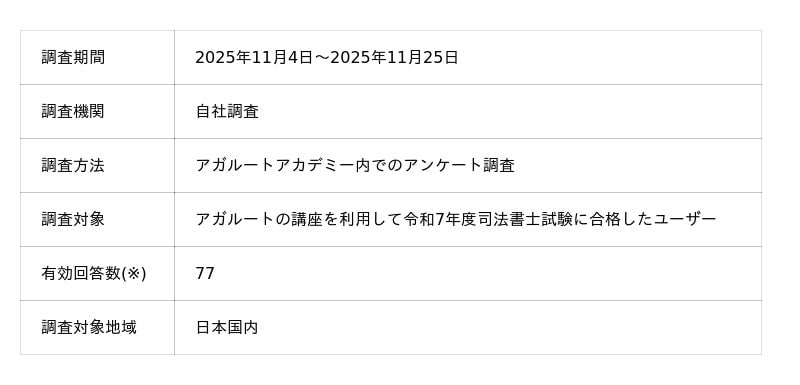 司法書士試験に合格した人のアンケート調査概要
