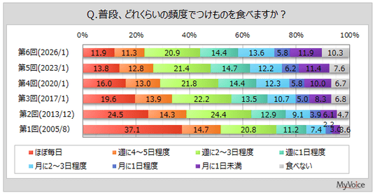 マイボイスコム株式会社(東京都千代田区、代表取締役社長:高井和久)は、6回目となる『つけもの』に関するインターネット調査を2026年1月1日~7日に実施しました。