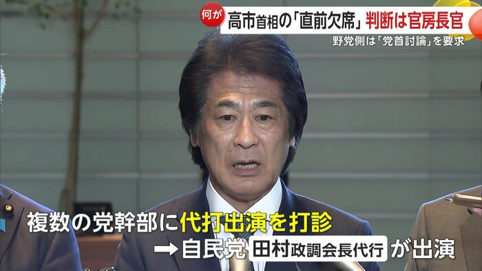 出演キャンセルの判断は木原官房長官によるもので、これより前に複数の党幹部に代打をできるかどうか打診した結果、田村政調会長代行が出演することになったという。