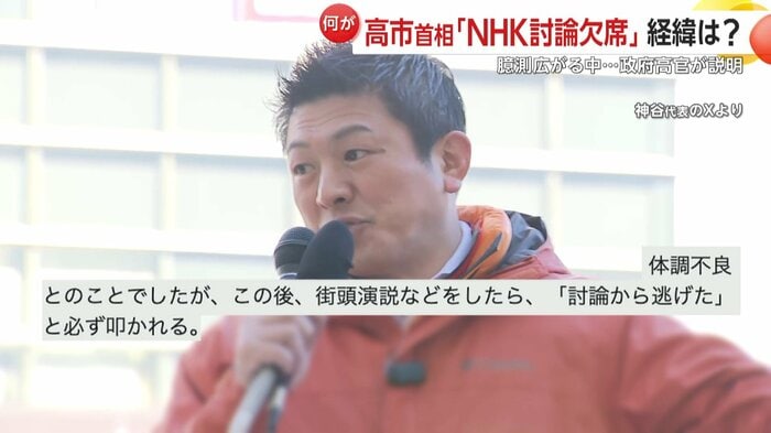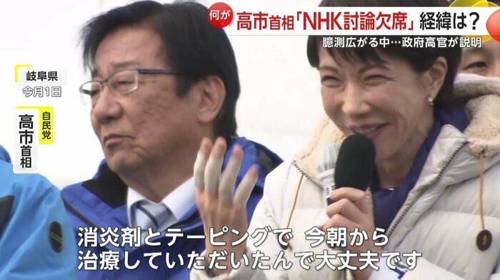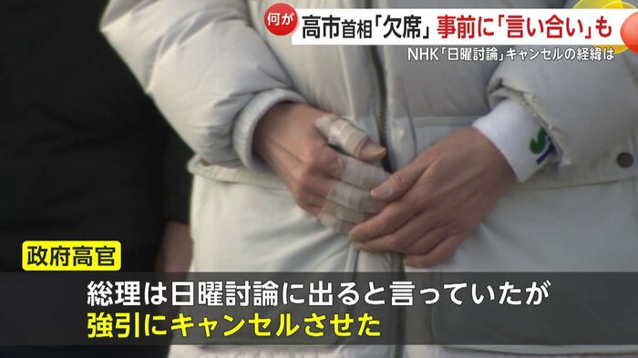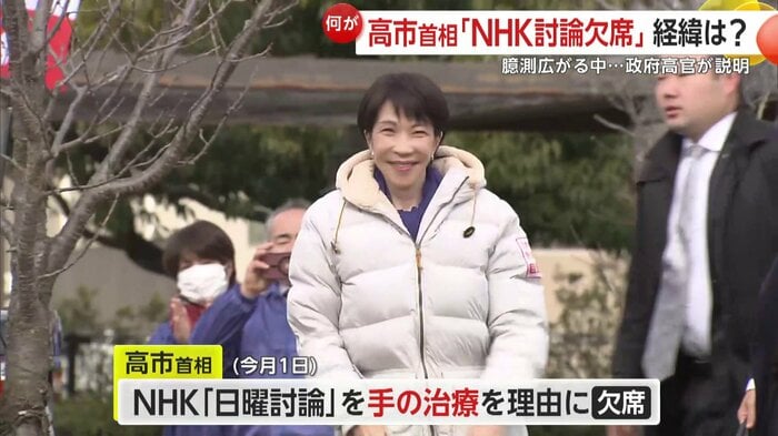 事の発端は、高市首相が2月1日の朝、NHKで放送された番組「日曜討論」を、手の治療を理由に直前でキャンセルしたことだった。