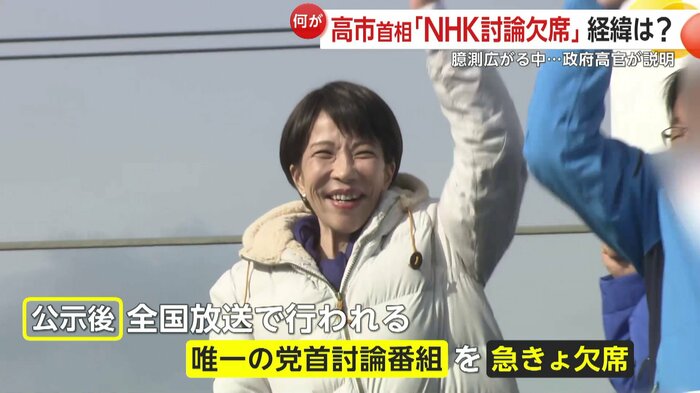 衆院選の投開票日まで残り3日となる中、自民党総裁の高市首相が党首討論番組を欠席した件について、政府高官が内情を説明し、注目されている。