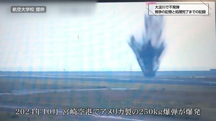 宮崎で「不発弾」というと、2024年10月に宮崎空港の誘導路で爆発した事が記憶に新しい。航空機が通過した直後に突然爆発し、改めて不発弾の恐ろしさを思い知らされた事件であった。今回、大淀川から見つかったものも、宮崎空港の不発弾と同じ規模のものだった。