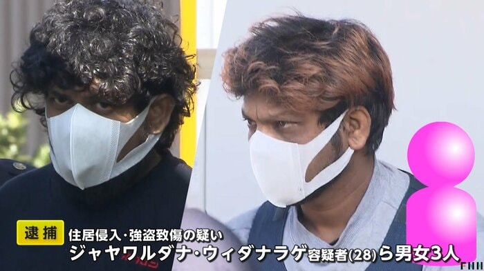 逮捕されたスリランカ国籍のジャヤワルダナ・ウィダナラゲ容疑者(28)ら男女3人は、住居侵入と強盗致傷の疑いがもたれている。