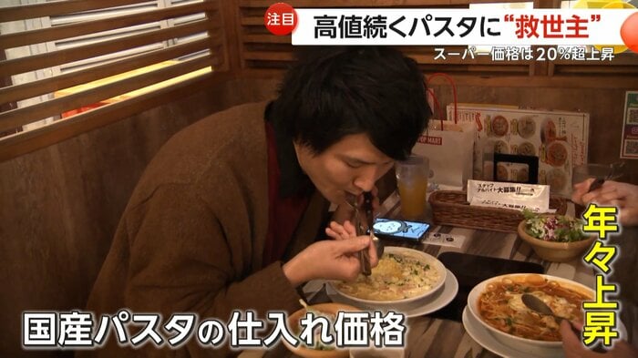 お客さんも大満足の一皿だが、店で使う「国産パスタ」の仕入れ価格は年々上がっているという。