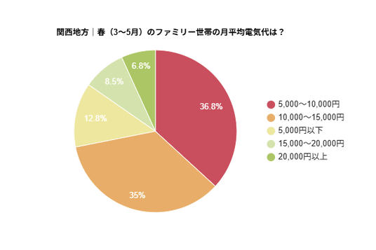 【関西のファミリー世帯】冷暖房の使用が少ない春の電気代は「5,000~10,000円」が約4割