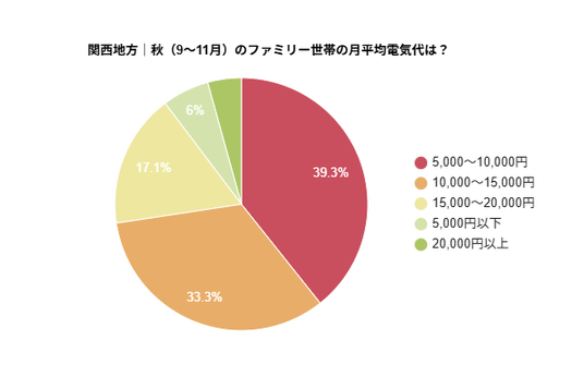 【関西のファミリー世帯】秋の電気代は「5,000~10,000円」が約4割