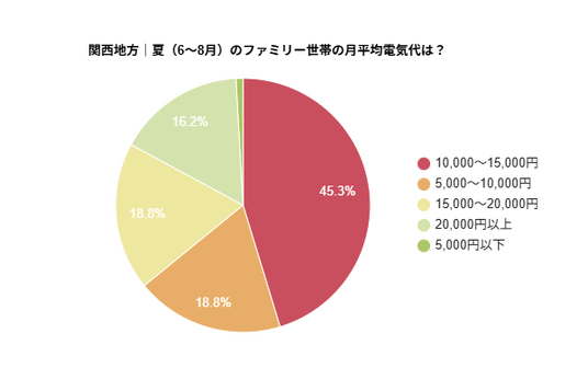 【関西のファミリー世帯】夏の電気代は冷房使用増加で「10,000~15,000円」が最多