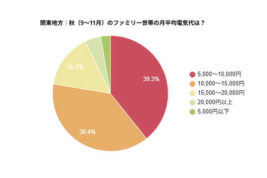 秋の電気代は「5,000~10,000円」と「10,000~15,000円」がほぼ同率
