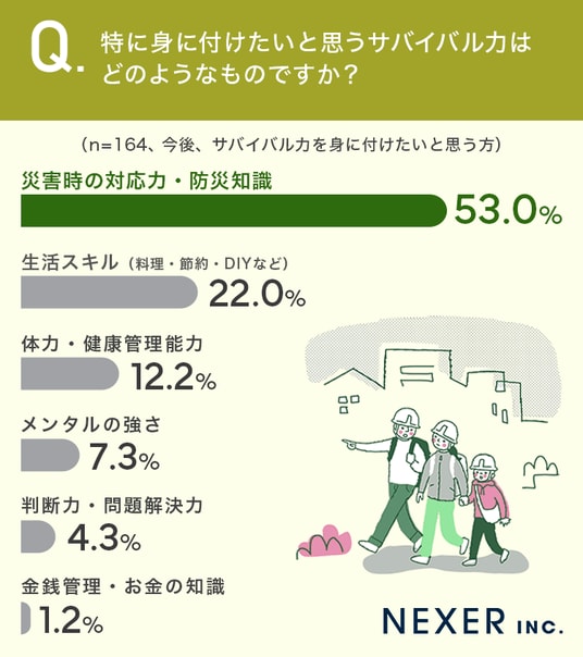 ということで今回は株式会社NEXERとOsametと共同で、全国の男女500名を対象に、「サバイバル力」についてのアンケートをおこないました。