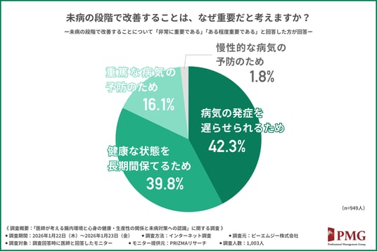 PMGグループでの「健腸ナビ」導入と連動し、医師を対象に「医師が考える腸内環境と心身の健康・生産性の関係と未病対策への認識」に関する調査を実施しました。