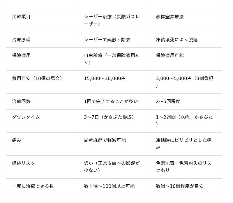 皮膚科医が解説するレーザー治療と液体窒素療法の違い、費用・ダウンタイム・効果を徹底比較
