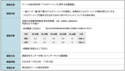株式会社パーソル総合研究所(本社:東京都江東区、代表取締役社長:岩田 亮)は、全国の職場で働くメンバー層を対象に実施した「フォロワーシップに関する定量調査」の結果を発表いたします。