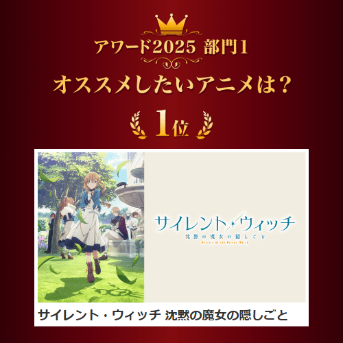 “オススメしたいアニメ部門”の第1位は『サイレント・ウィッチ 沈黙の魔女の隠しごと』!!