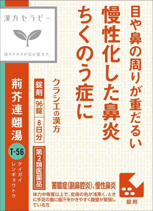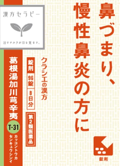 効能:比較的体力があるものの次の諸症:鼻づまり、蓄膿症(副鼻腔炎)、慢性鼻炎