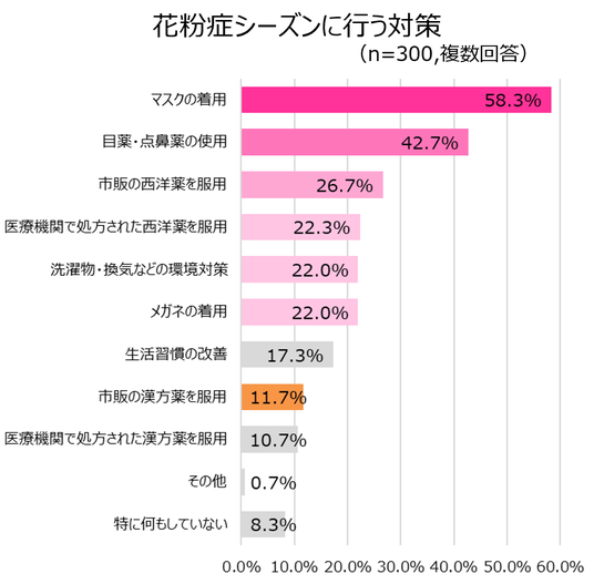 花粉症対策は「マスク」「目薬・点鼻薬」が主流/30代女性は「眠気」を避け漢方薬を支持!?