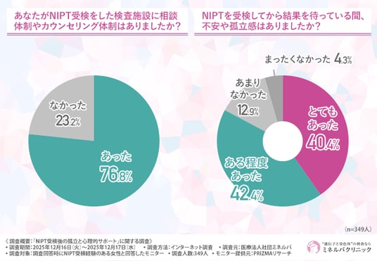医療法人社団ミネルバ(所在地:東京都港区、理事長 兼 医師/臨床遺伝子専門医:仲田 洋美)が運営するミネルバクリニックは、NIPT受検経験のある女性を対象に「NIPT受検後の孤立と心理的サポート」に関する調査を実施しました。