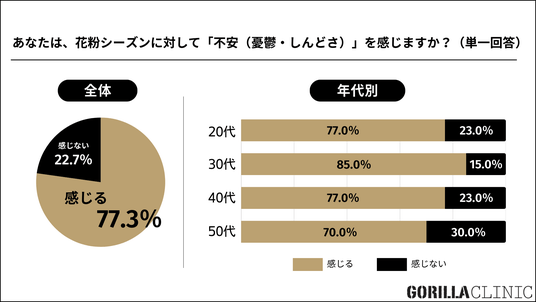 ● これから来る「花粉症シーズン」に対し、男性の8割(77.3%)が「不安・憂鬱」と回答。