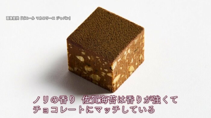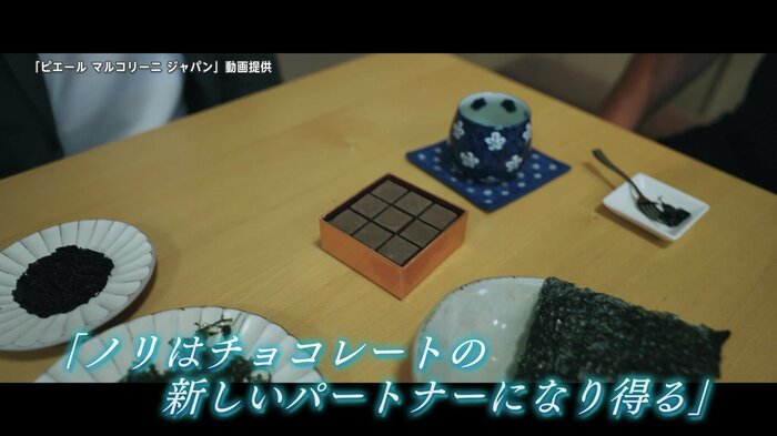 「海苔はチョコレートの新しいパートナー」と語る世界最高峰のショコラティエ、ピエール マルコリーニさん。有明海産の佐賀海苔とチョコの異色のコラボによる新作を発表。自然の塩味を生かしたチョコの味は絶品だ。