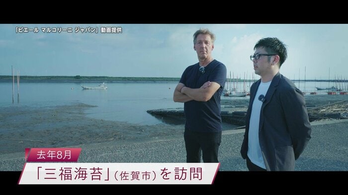 マルコリーニさんは去年8月、佐賀市川副町を訪れた。有明海産の「佐賀海苔」の味と産地の環境を自分の目で確かめるためだ。
