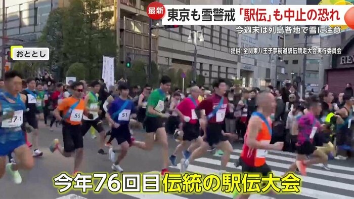 主催する八王子市は、路面の凍結など選手の安全が確保できない場合、中止となる可能性があるとして、今後、ホームページなどで開催するかどうか告知するとしている。