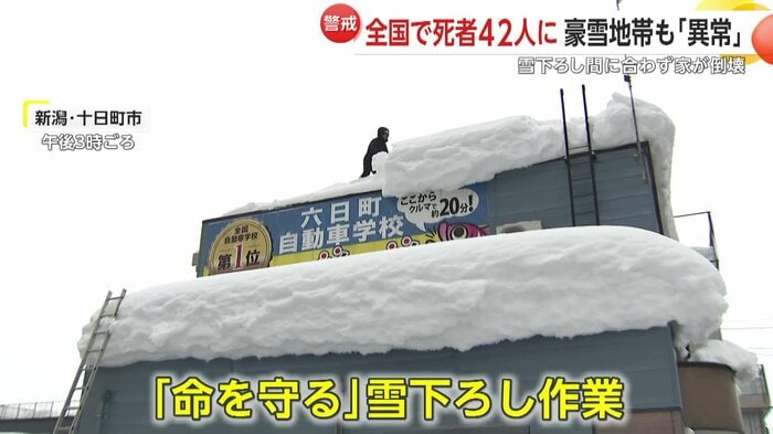 6日も市内では、落雪事故などから命を守るための雪下ろし作業が行われていた。雪下ろし業者は「一気に(雪が)降ると、どこも大変。雪のやり場がなくなってしまう」と話す。