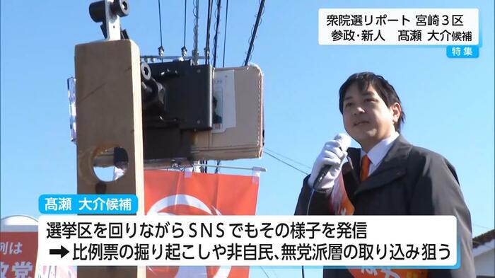 高瀬候補は選挙区を回りながらSNSでもその様子を発信。比例票の掘り起こしや、非自民、無党派層の取り込みを狙う。