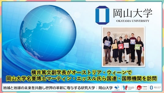 国立大学法人岡山大学(本部:岡山市北区、学長:那須保友)の横井篤文副学長(グローバル・エンゲージメント担当)は、2026年1月19日にウィーンにあるエッスル財団を訪問し、本学が12月に名誉博士称号を授与したマーティン・エッスル氏と面会しました。