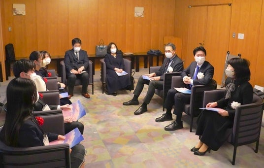 表彰式には、各賞を受賞した大学生、高校生4人が出席。表彰状と副賞の授与に続き、寺澤会長の司会進行で懇談会が行われました。受賞者は、論文を執筆した経緯や親への思いなどを語りました。伊原木隆太知事、中島義雄代表幹事からは受賞者への質問や論文の感想、自身の体験等が語られ、本学の三村由香里理事(SDGs・ダイバーシティ&インクルージョン担当)からも、「受賞者の皆さんが親への感謝の気持ちなど、普段は当たり前で気づきにくいことを言葉にして伝えたことが素晴らしい。今後の活躍も期待している」と受賞者に向けた熱いエールが送られました。