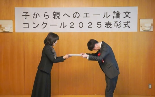 論文は、高校生や大学生が、親が仕事と家庭を両立しようとする際に起きる具体的なエピソードを踏まえ、自身の意識や行動の変容、社会への提言を交えて、普段なかなか伝えることのできない親への感謝の思いを書きつづったものです。