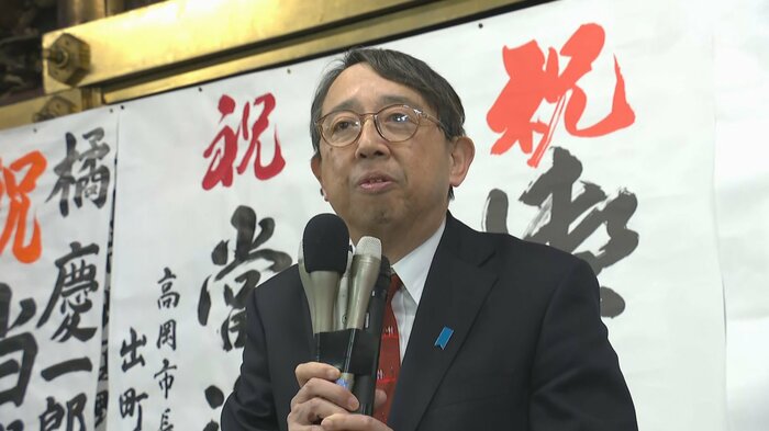 橘さんは午後8時すぎに高岡市内で支援者とともにセレモニーに臨み、バンザイをするなどして当選確実を喜んだ。